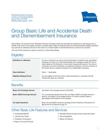 Life insurance is an important part of your financial security, especially if you support a family. Lemek LLC provides employer paid Basic Life/Accidental Death & Dismemberment insurance to all eligible employees at no cost to you. Coverage is automatic and provided by The Standard.
